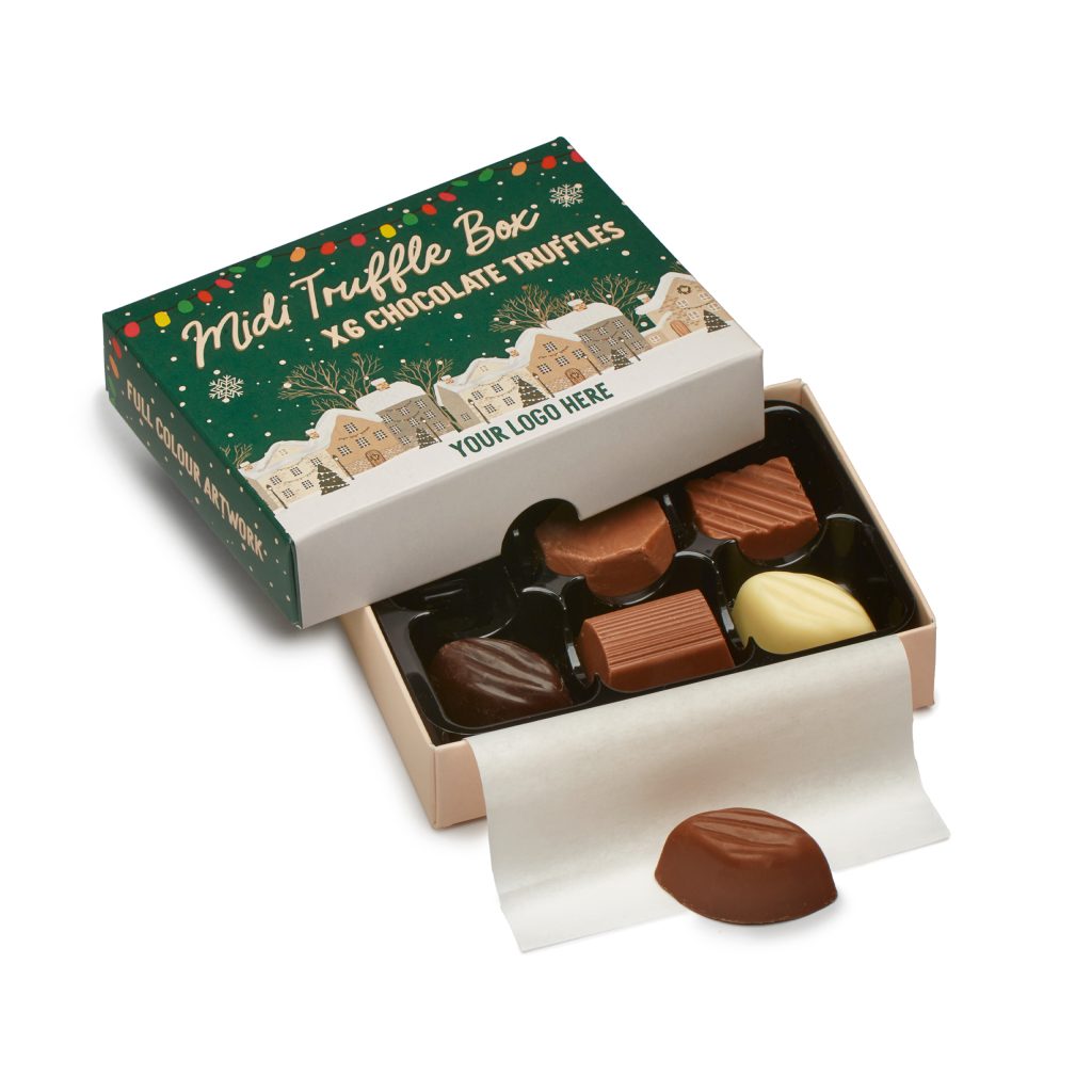 Made using Sustainable Cocoa these truffles are perfect for adding a touch of seasonal cheer to any promotional campaign.